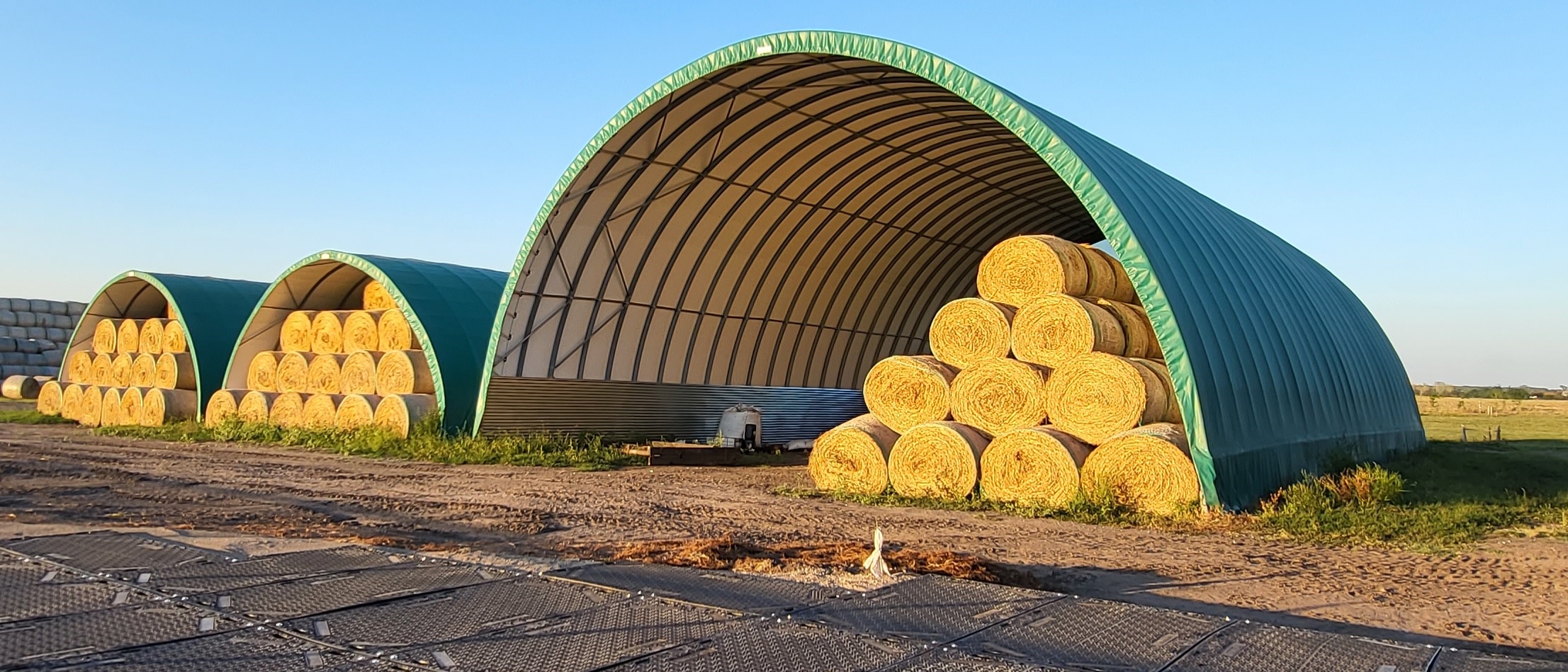 - check_circleKönnyű hozzáférés és rendezés: A sátrak lehetővé teszik a takarmány könnyű hozzáférését és rendezését. Shelterall sátorban sátormérettől és bálatípustól függetlenül könnyen rakodhatóak a bálák. A meglévő rakodógépéhez és megszokott bálatípushoz tudjuk a sátor méretét igazítani, ezzel is figyelembe véve a minimális kiadás, maximális tárolás elvét.