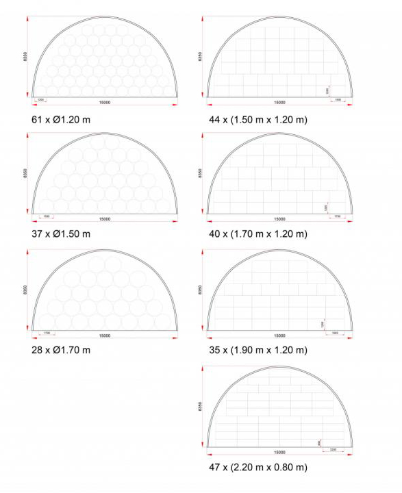 A sátor mérete, kialakítása az adott gazdaság igényeihez igazítható. Kérhető zárt oromzattal, zárható kapuval, extra szellőzőkkel – így akár egy egyszerű bálatárolóból komplex mezőgazdasági tároló is kialakítható.